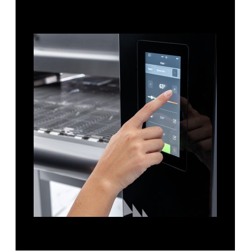 Cuptorul este prevăzut cu reglaj separat pentru temperatura superioară și inferioară, oferind control precis asupra procesului de coacere. Panoul digital permite setarea temperaturii, reglarea vitezei benzii transportoare și memorarea programelor de lucru, astfel încât utilizarea să fie rapidă și ușoară în activitatea de zi cu zi.