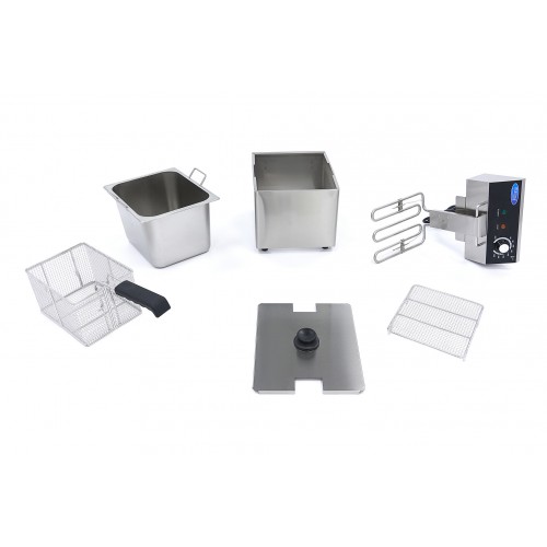 Friteuza Maxima 8L este o friteuza potrivita pentru utilizarea zilnica.Are o friteuza de 8 litri, ceea ce o face ideala pentru prepararea gustarilor in bucatariile profesionale.Carcasa, friteuza si cosul din otel inoxidabil sunt usor de curatat.