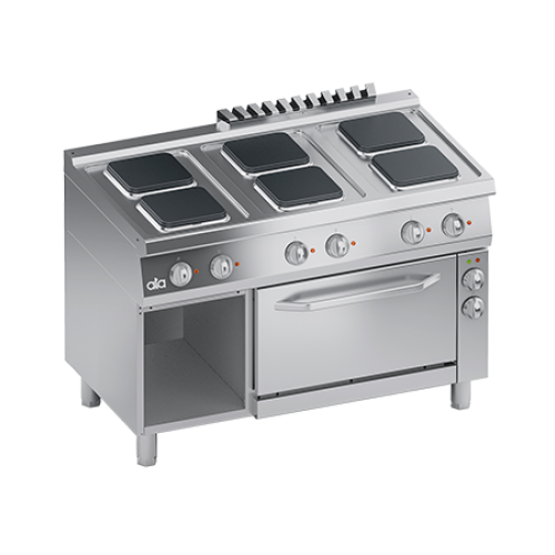 Masina de gatit linia 700 PERFORMANCE/ Aragaz profesional electric 6 arzatoare patrate si cuptor electric ventilat si dulap deschis 1/1GN ATA