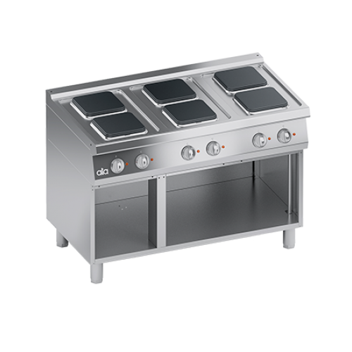 Masina de gatit linia 700 PERFORMANCE/ Aragaz profesional electric 6 arzatoare patrate si dulap deschis model de banc ATA