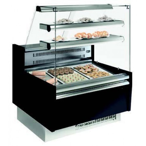 Vitrina frigorifica pentru cofetarie cu racire statica. Control electronic al temperaturii si afisaj digital. Cadru interior din profile de aluminiu anodizat. Panouri laterale ABS cu mai multe culori disponibile. Picioare reglabile Dezghetare automata